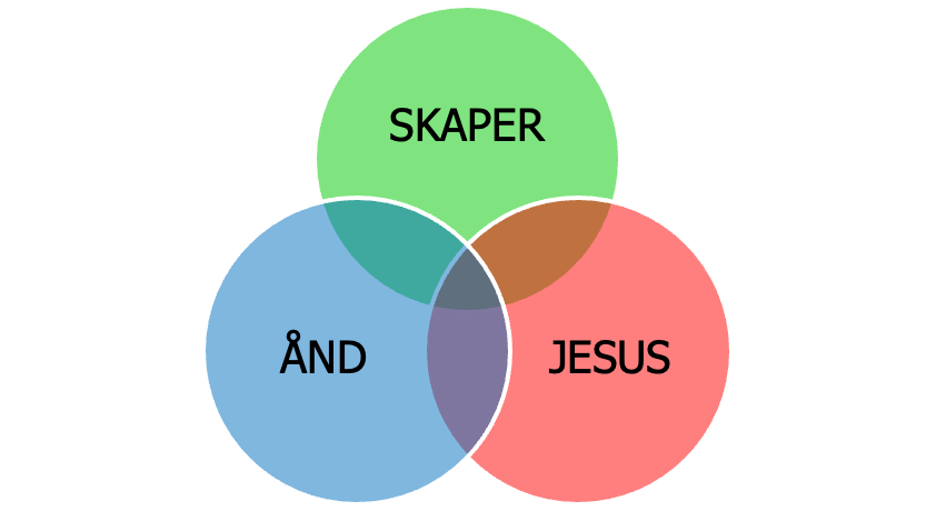 Dersom vi maler Kristus korsfestet med forsoningens farge alene (rød, jf figuren nedenfor), kan vi skape et rom for usunne liberale (grønn) og karismatiske (blå) tendenser. Altså, troslærens kjernepunkt kan – forkynt løsrevet fra ”Den store fortellingen” – danne trosliv som reflekterer tidens trender mer enn TROENS opphavsmann og fullender.