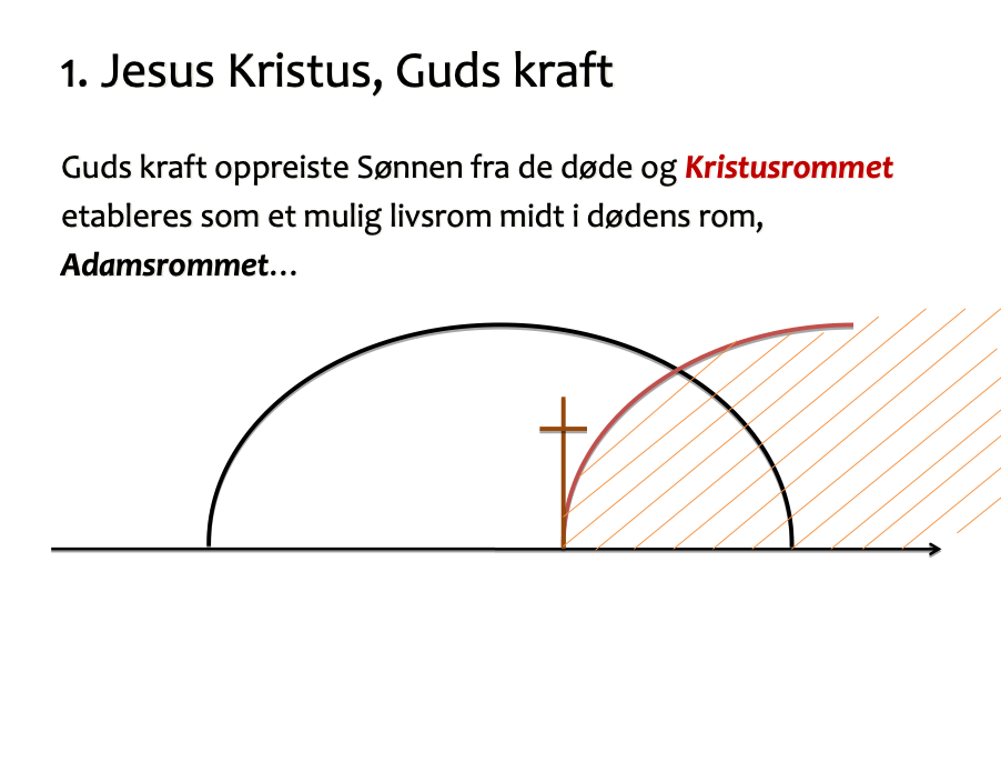 Mer enn noen tale eller tjeneste eller tegn, triumferte Guds kraft da Faderen oppreiste Sønnen fra de døde. Dette overgår alt annet Gud har gjort, noen gang, noe sted. I Ef 1:19 stabler Paulus hele tre substantiver oppå hverandre for å forsøke å gi uttrykk for hvor komplett usannsynlig denne nye muligheten i vår umulige situasjon var, her vi var i ”Adamsrommet”; han taler om Guds kraft (ischys), styrke (kratos) og energi (energeia). Det er en ny tid som bryter inn i vår tid. Det er Kristusrommet etableres som et mulig livsrom midt i dødens rom, midt i Adamsrommet.